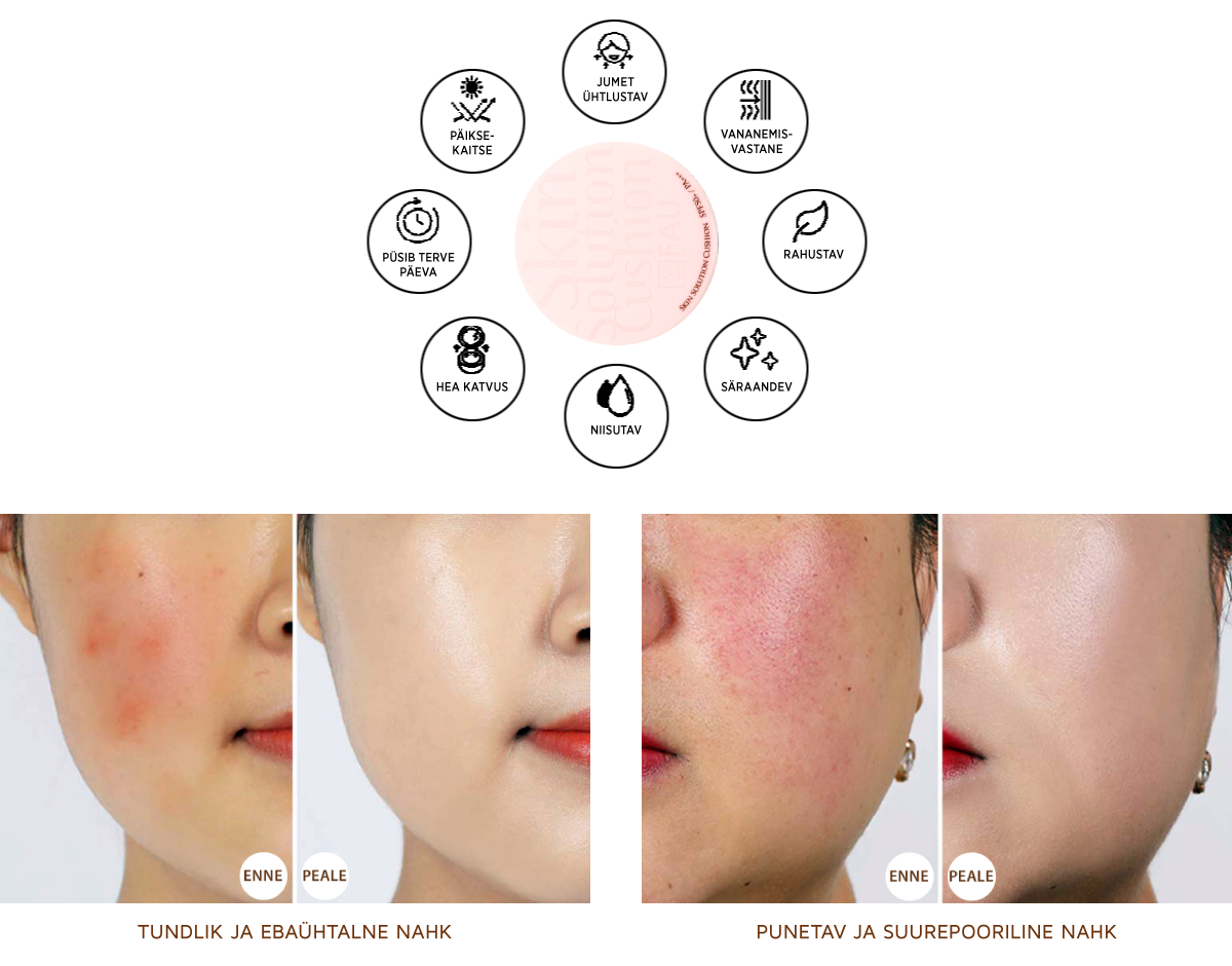 Roosakas, kollase alatooniga. Nahka niisutava, jumet ühtlustava ja vananemisvastase toimega. UV kaitse SPF 50.